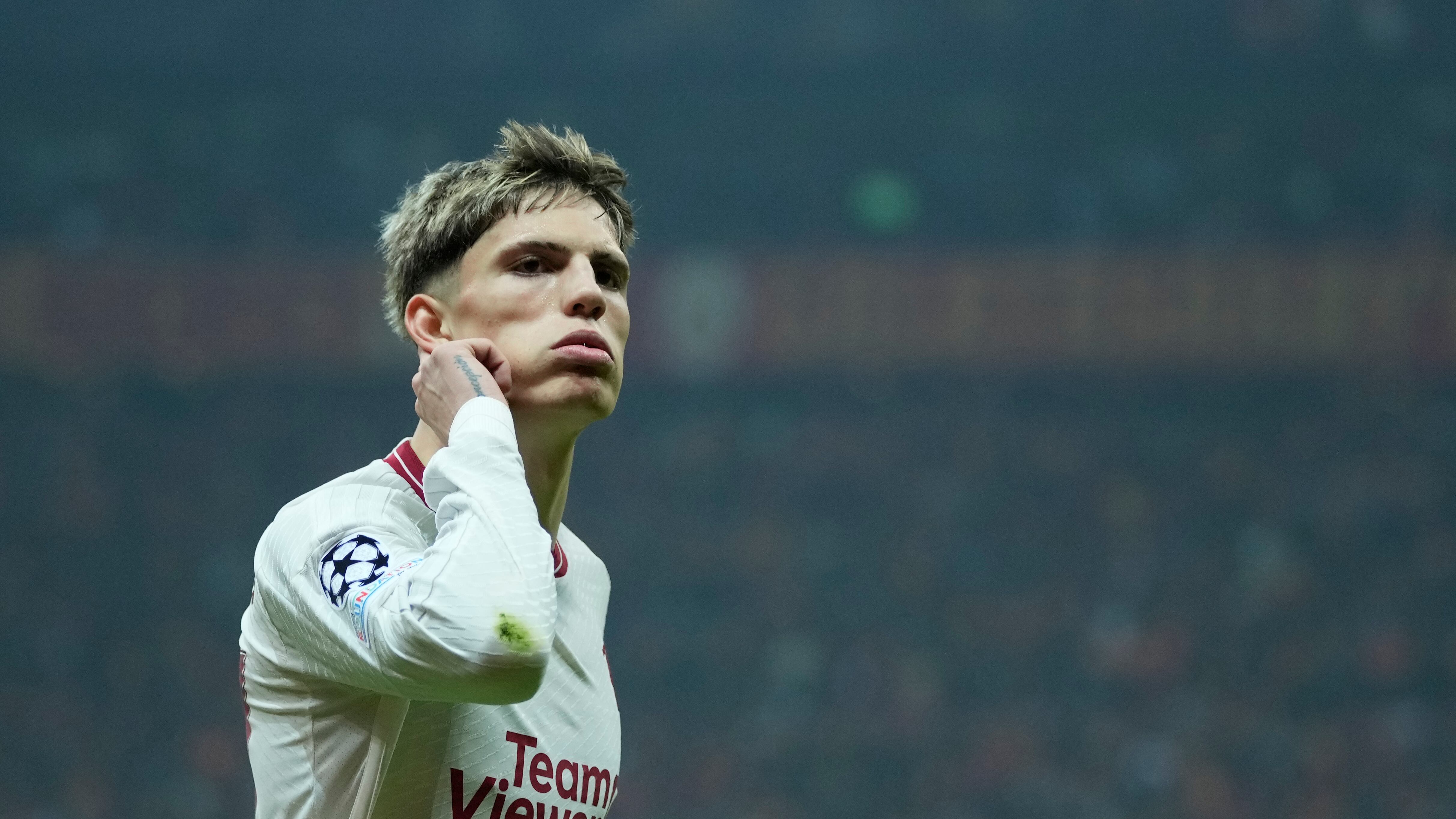 Alejandro Garnacho celebra tras anotar el primer gol del Manchester United en el partido contra Galatasaray en la Liga de Campeones, el miércoles 29 de noviembre de 2023, en Estambul. (AP Foto/Francisco Seco) AP (Francisco Seco/AP)