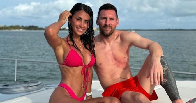 Antonella Roccuzzo, esposa del argentino, publicó en su cuenta de Instagram, varias fotos de ella con él en la playa. En una de las imágenes, se ve a la modelo de 36 años, al lado de ‘La Pulga’. Ella luce un diminuto bikini de color rosa, mientras él está con una bermuda roja y su bota ortopédica como parte del tratamiento por su lesión. En otra foto, ella se muestra en una pose subida de tono, exhibiendo la parte trasera de su bikini tipo hilo, mientras que en una tercera fotografía, la pareja sonríe a la cámara con varios amigos, entre ellos, el futbolista uruguayo Luis Suárez y su esposa Sofía Balbi.