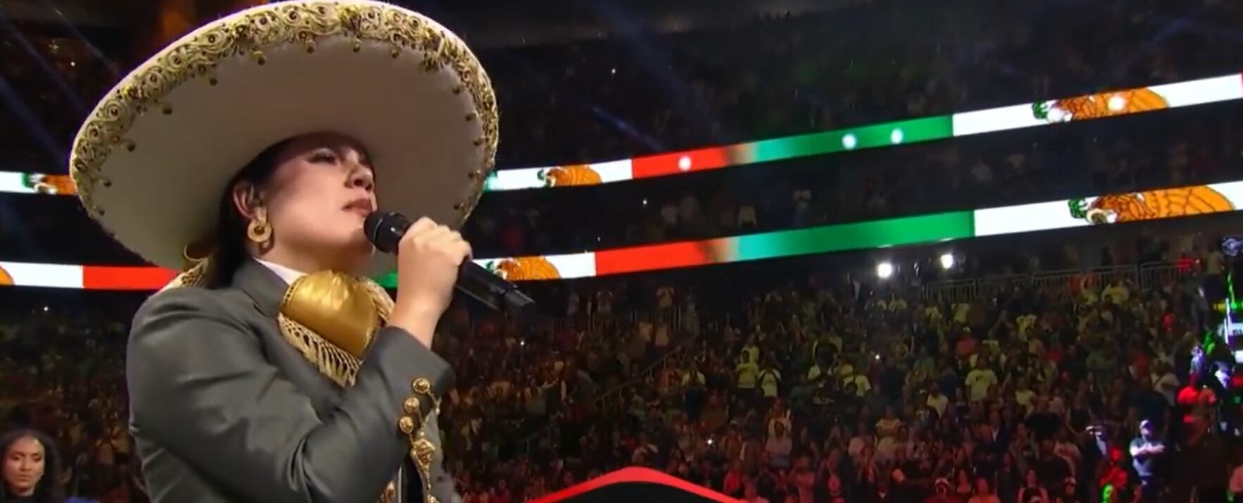 Estaba nerviosa. Camila Fernández, nieta del difunto charro mexicano ‘Chente’ Fernández, se equivocó al cantar el himno de México en el T-Mobile Arena previo a la pelea que ganó el ‘Canelo’ Álvarez a Berlanga.