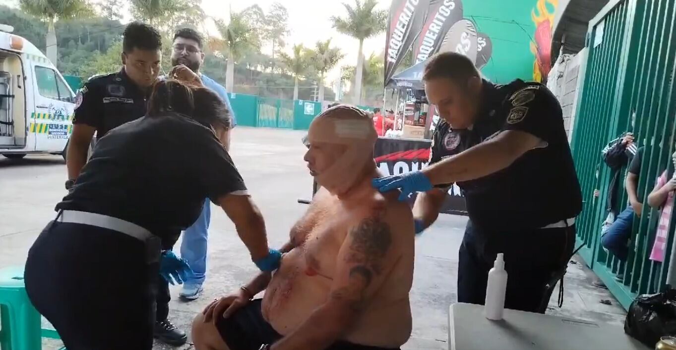 Se trata de Cristian Castro Hernández quien fue atendido por los socorristas de los Bomberos Municipales Departamentales en la puerta del estadio. Tenía un golpe en la cabeza y sin ropa. Luego fue trasladado a un hospital.