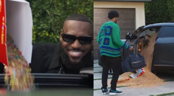 Una cámara escondida grabó cuando Bronny abrió la puerta del carro. Una montaña de cereal salió del interior del vehículo; mientras tanto, su padre pasó en otro carro y le dijo sonriendo, que no llegara tarde al entrenamiento.