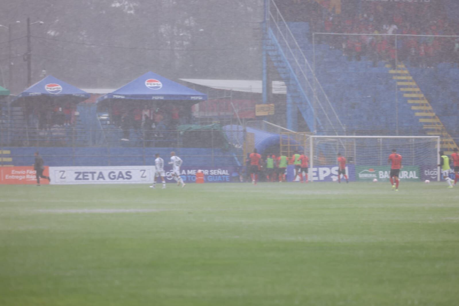 La fuerte lluvia registrada en la ciudad impidió que el juego pudiera disputarse con normalidad, por lo que la organización decidió reprogramar el partido para este domingo a las 10:00 a.m. en el estadio El Trébol.
