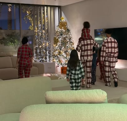 La familia, compuesta por el luso, Georgina y sus cinco hijos —Cristiano Jr., los mellizos Eva y Mateo, Alana Martina y la pequeña Bella Esmeralda—, se dejó ver en un ambiente de total armonía y calidez hogareña. Uno de los detalles que más ha conmovido a los internautas fue la elección de su vestimenta: todos los integrantes de la familia lucieron el mismo diseño de pijama navideño, reforzando la imagen de unión que siempre proyectan.