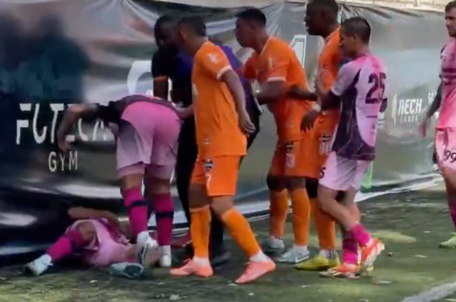 La acción ocurrió tras un empujón del jugador Mathius Gaitán, que provocó que González se estrellara contra una valla publicitaria ubicada a un costado del campo.