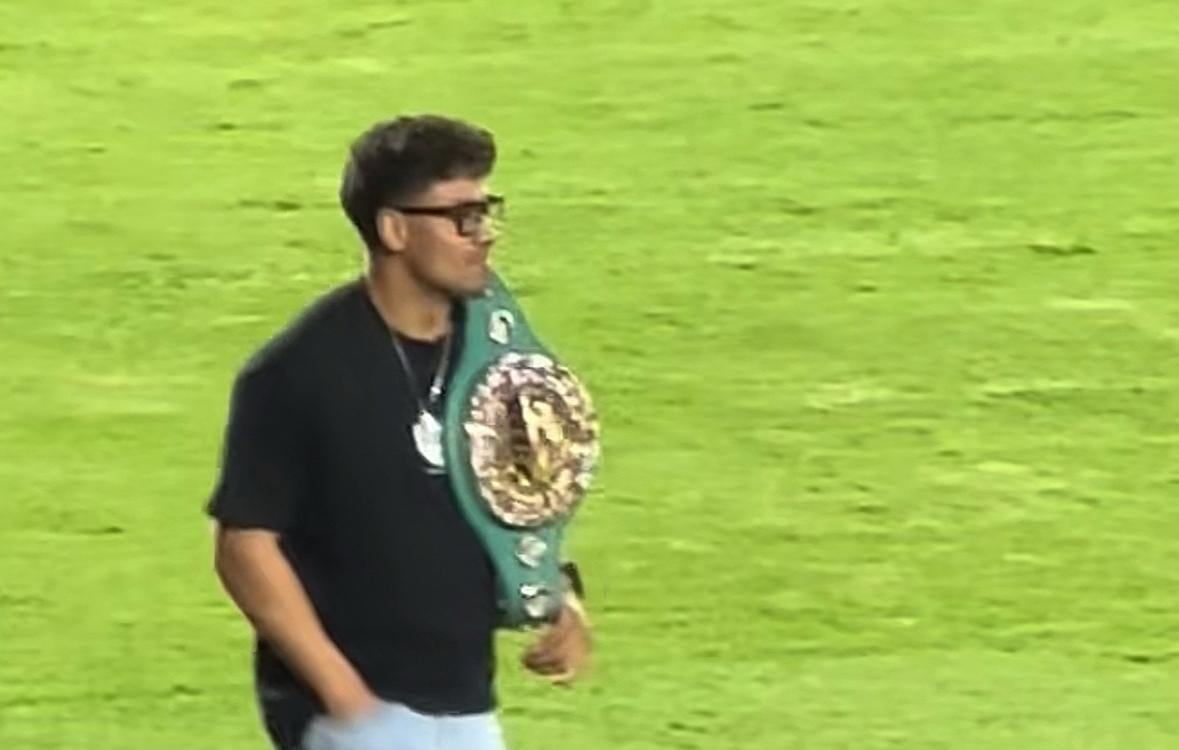 Martínez fue el invitado especial de la noche en el enfrentamiento entre rojos y cremas (1-0), donde recibió el reconocimiento de la afición escarlata, que no dejó de corear: “Ahí, ahí, ahí está el campeón”, mientras el pugilista mostraba su cinturón en el terreno de juego.