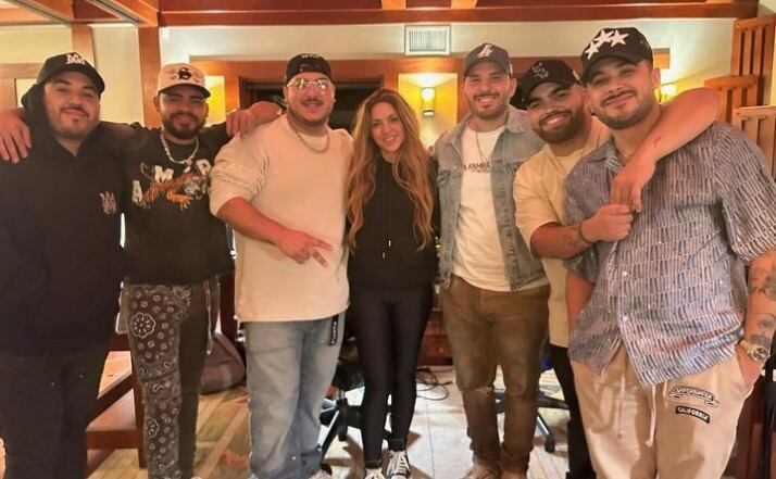 “Nuestra primera sesión con @grupofrontera de esta canción (Entre Paréntesis) Mi pequeño homenaje al género regional mexicano que tanto me gusta! México, Las Mujeres Ya No Lloran”, escribió Shakira junto a una foto con Grupo Frontera, integrado por Adelaido ‘Payo’ Solís III, Juan Javier Cantú, Julián Peña Jr., Alberto ‘Beto’ Acosta, Carlos Guerrero y Carlos Zamora.