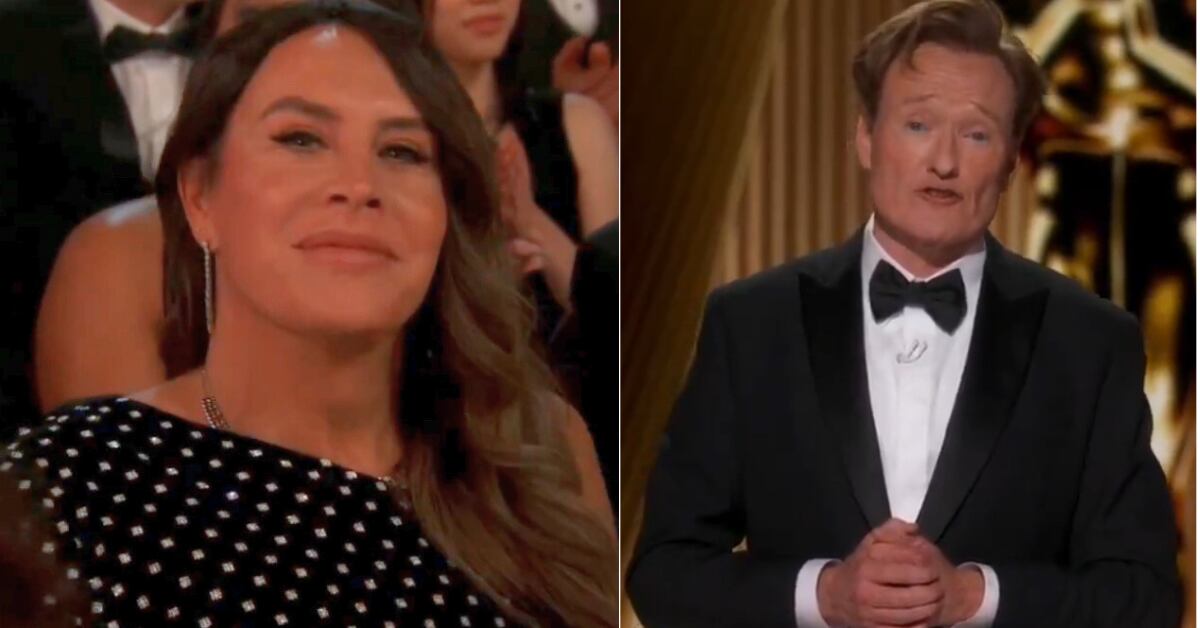 “Karla Sofía Gascón está aquí esta noche y Karla, si vas a tuitear sobre los Oscar, recuerda que mi nombre es Jimmy Kimmel (presentador anterior)”, dijo el cómico Conan O’Brien durante la ceremonia, mientras la actriz, en la sección de nominados, sonreía con la cabeza baja.