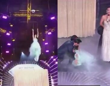 En las imágenes se observa como el staff del programa, corre para tratar de ayudarla, sin embargo la participante no pudo levantarse tras la fuerte caída.