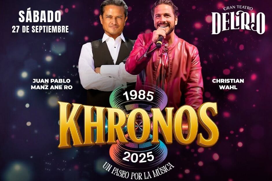KHRONOS será un paseo por la música que llega al escenario del Gran Teatro Delirio, se cantará icónicas piezas musicales desde 1985 al 2025 en versión pop español, para regalarte una noche inolvidable especialmente pensada para la Generación X… y para todos los que aman la buena música con el alma.