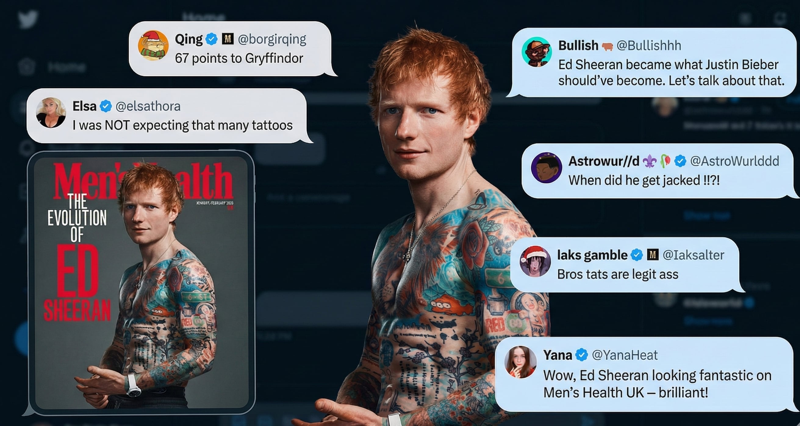 Durante años, Ed Sheeran fue percibido como el “chico normal” del pop: ropa sencilla, guitarra al hombro y cero aspiraciones de ícono fitness. Esa narrativa se vino abajo en cuestión de horas. La portada no tardó en viralizarse, acumulando millones de visualizaciones, comentarios y reacciones que oscilaron entre el aplauso y la burla.