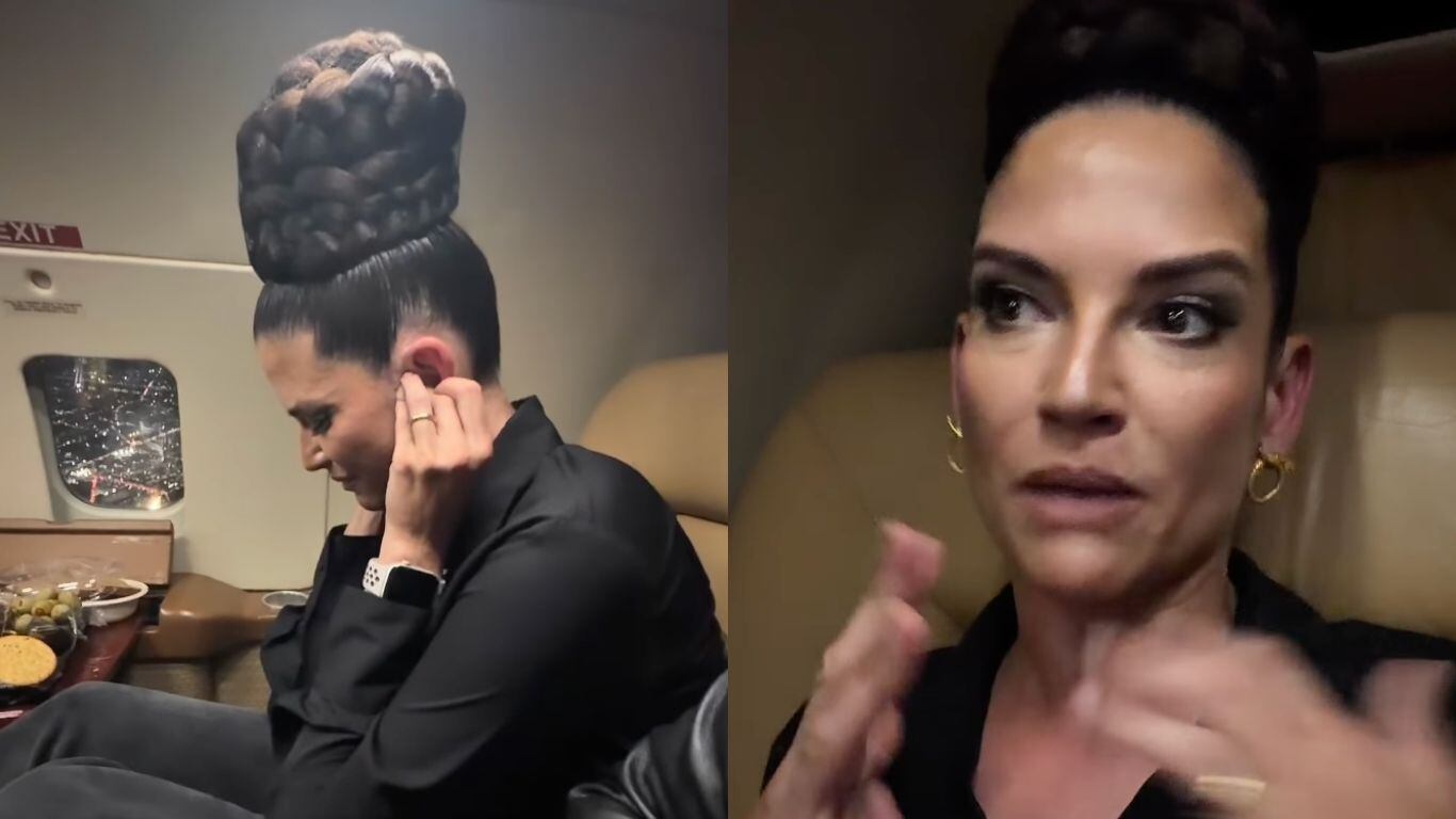 Las imágenes muestran a la intérprete afectada por el ruido y la tensión dentro de la aeronave, mientras se ejecutaban los protocolos de emergencia.