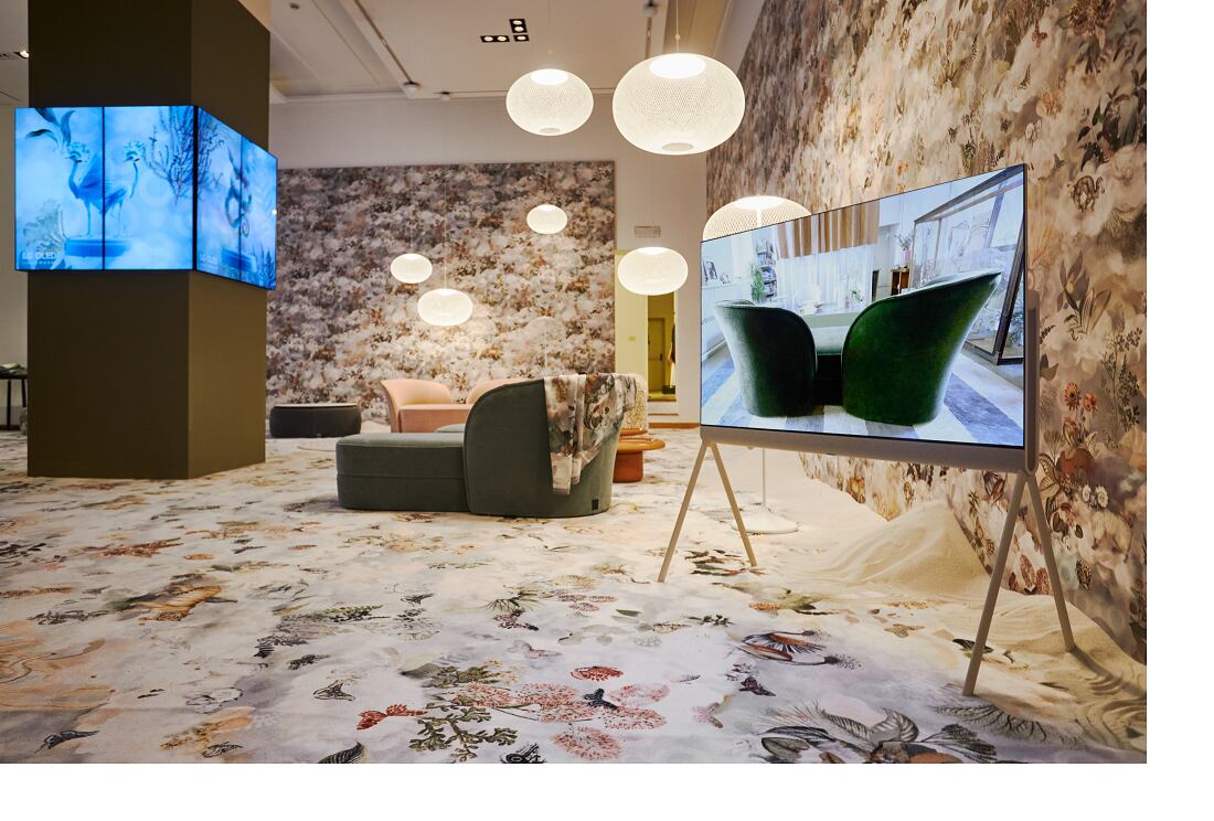 LG OLED Posé, representa un mueble u objeto de gama alta, tiene bordes suavemente curvados. Pero eso no es todo, ya que representa un relajante color beige, gracias a su diseño estéticamente agradable que complementa cualquier decoración.