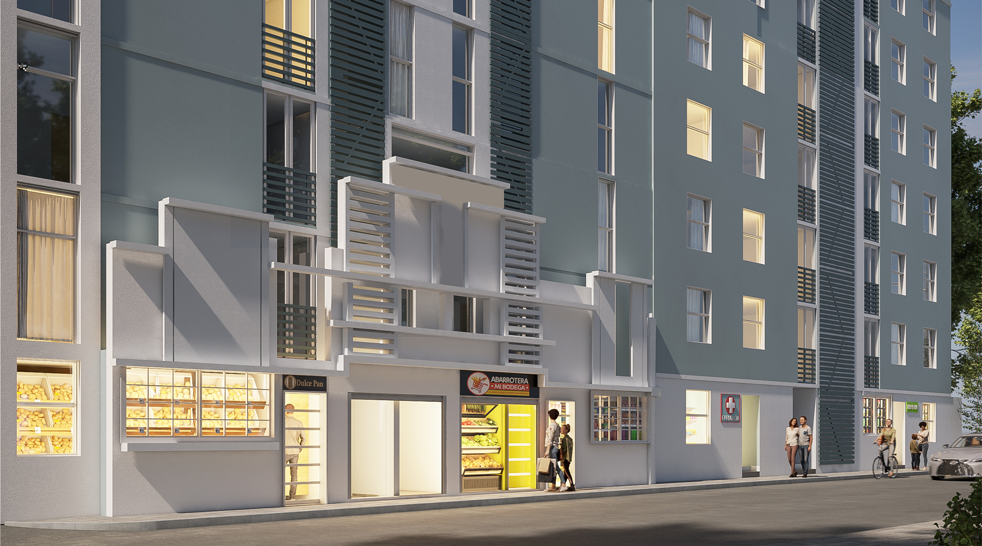Los locales comerciales se encuentran en el primer nivel de las tres torres de apartamentos, lo que también presenta una excelente oportunidad para alcanzar y vender productos a más de 500 vecinos que residirán en el proyecto, además del tráfico peatonal que pasa por la 13 avenida y las calles aledañas. Los locales de Vías la Parroquia tienen espacios optimizados, al gusto de sus propietarios y son multifuncionales con su área comercial, administrativa, bodega y dos sanitarios.