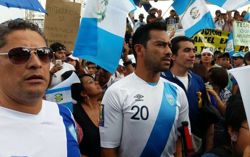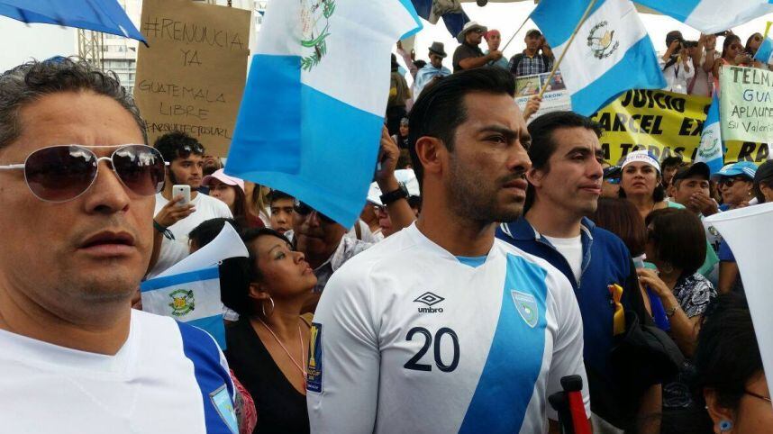 Vestido con la camisola azul y blanco con el número 20 que tradicionalmente ha usado en su carrera, Carlos Ruiz se convirtió en uno más de los guatemaltecos que pide la renuncia del presidente Otto Pérez Molina.