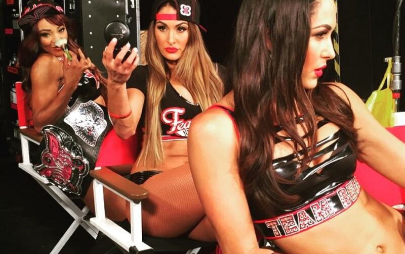 Junto a Nikki y Brie Bella Foto: Vía instagram.com/thefoxxyone