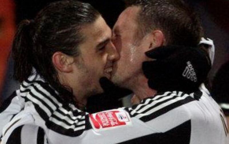 9. Andy Carroll y Kevin Nolan: En 2010, Nolan y Caroll militaban en el Newcastle y con un beso celebraron un gol ante el Doncaster Rovers. Foto: Vía twitter.com/M0tivacionesF