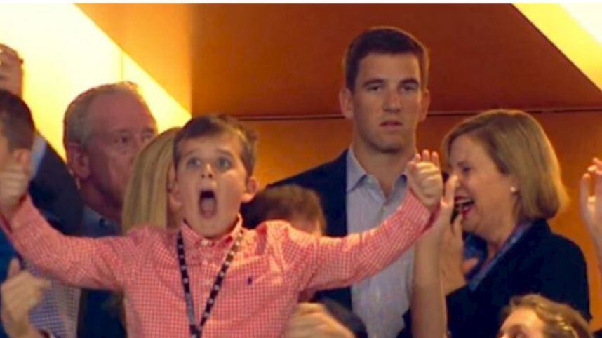 Una cámara grabó el momento en el que los familiares y amigos del mariscal de campo de los Broncos celebraron la inminente victoria de Peyton. Todos se mostraron alegres, menos el quarterback de New Yordk Giants.