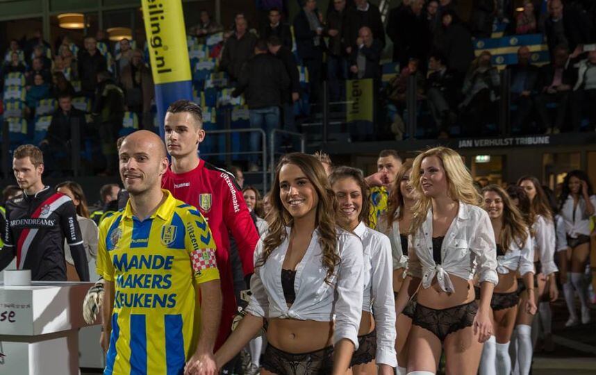 El equipo RKC Waalwijk, de la segunda división de Holanda, cambió a los tradicionales niños que acompañan de la mano a los jugadores, por hermosas modelos de lencería, cuando saltaron a la cancha.