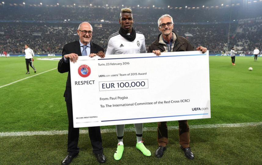 Previo al partido entre la Juventus y el Bayern Múnich, el mediocampista francés del conjunto italiano, Paul Pogba, realizó un donativo de 100 mil euros al Comité Internacional de la Cruz Roja.