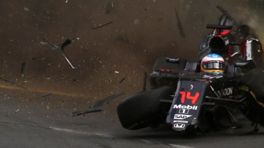 El piloto español de McLaren, Fernando Alonso, y su colega mexicano de Haas, Esteban Gutiérrez, sufrieron un estrepitoso accidente este domingo, en el marco del Gran Premio de Australia 2016 de la Fórmula 1. Te compartimos el video.