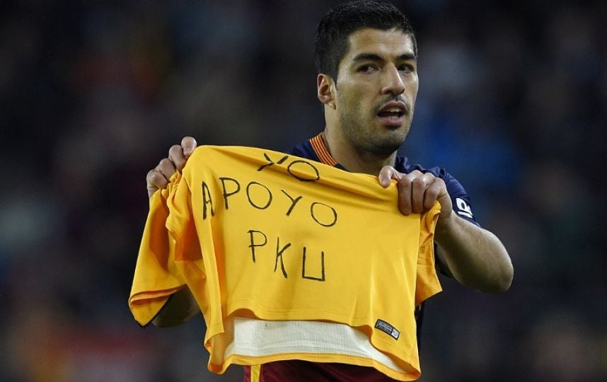 Ella le ofreció una camiseta blanca para que la usara debajo de la camiseta blaugrana, pero el uruguayo, para evitar la tarjeta amarilla, escribió el mensaje en una camiseta del Barça que tenía preparada en el banquillo.