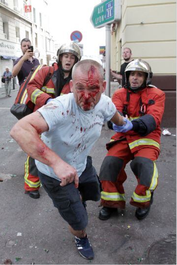 Debido a este choque, un hincha inglés quedó en estado crítico tras los enfrentamientos en el centro de Marsella. El herido fue trasladado a un hospital en estado grave, informó la policía.