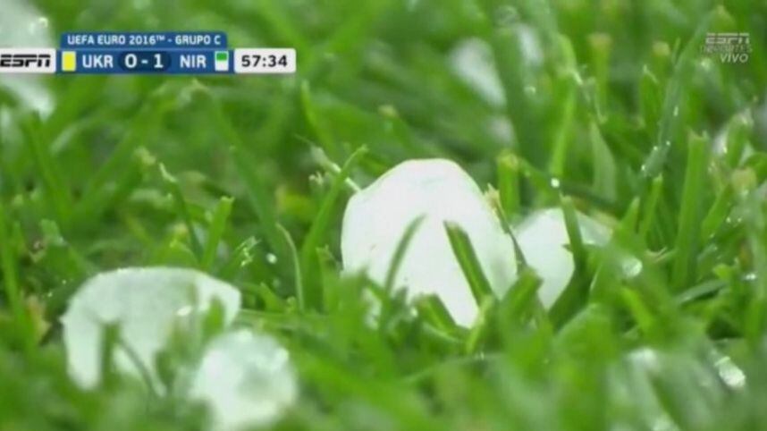 La algarabía era total en los hinchas de Irlanda del Norte, quienes se hacían sentir fuerte en el Stade de Lyon y lo único que querían era que pasen rápido los minutos para festejar el primer triunfo en una Eurocopa. Pero su ilusión se vio interrumpida cuando empezaron a caer fuertes granizos casi en la hora de juego y el partido tuvo que detenerse.