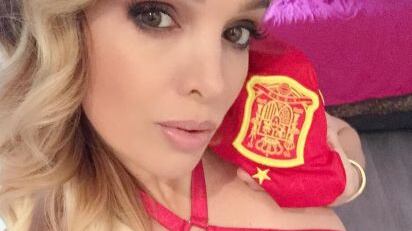 La expornstar se escribe en los pechos el nombre de las dos selecciones y lo goles que cree que marcarán.