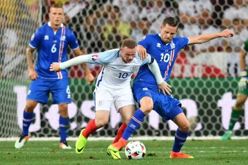 Wayne Rooney adelantó a los ingleses de penal (4), pero la reacción islandesa llegó enseguida por medio de Ragnar Sigurdsson (6). Kolbeinn Sigthorsson adelantó sorpresivamente a los islandeses al minuto 18.