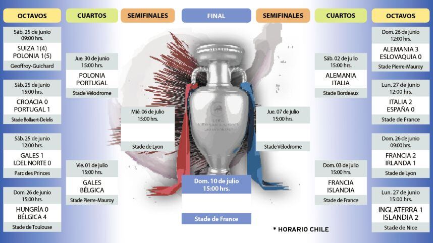 La Eurocopa 2016 está llegando a su fin y ahora sólo quedan ocho selecciones buscando el título del Viejo Continente, las que se reducirán a cuatro el domingo al terminar la fase de los cuatro mejores.