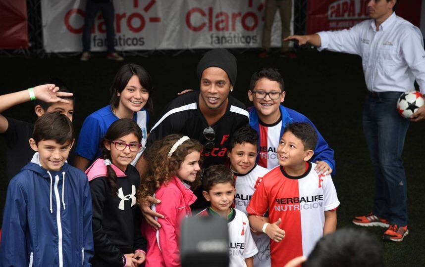 El legendario 10 de la canarinha se mostró muy contento de compartir con los niños, con quienes disputó un partido de fútbol y mostró la magia que aún sale de sus pies.