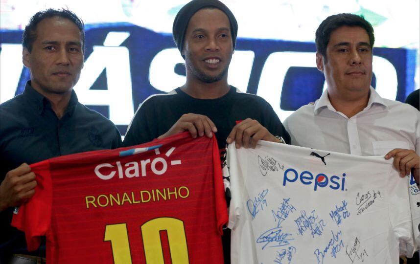 Con la sonrisa y la humildad que lo caracteriza la leyenda brasileña Ronaldinho hizo su gran aparición en Guatemala esta tarde, en una conferencia de prensa a la que asistieron decenas de medios nacionales e internacionales.