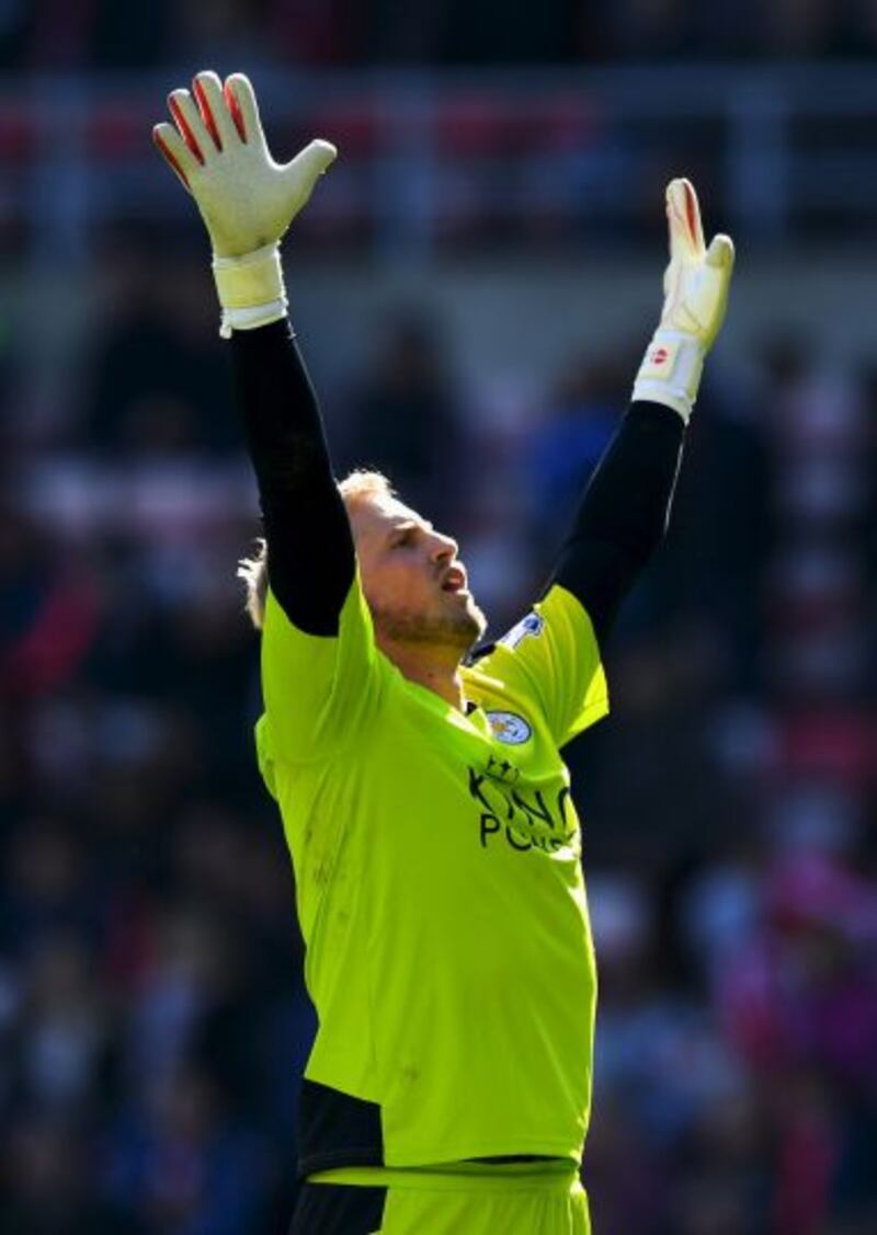 Mike Stowell, entrenador de arqueros del Leicester, pone a punto a los guardametas Kasper Schmeichel, Ben Hamer y Ron-Robert Zieler con una máquina que lanza balones con distintas velocidades y efectos.