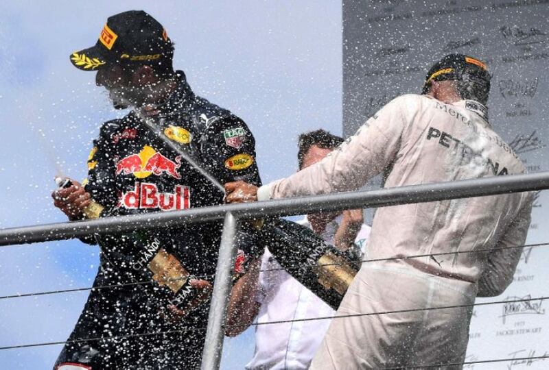 Las diferentes estrategias variaron en algunos puestos la clasificación al término de la primera vuelta, pero Rosberg no pudo remontar su salida fallida. Además, el piloto local fue sancionado con 5 segundos de parada por un adelantamiento ilegal sobre Verstappen que obligó al joven talento holandés a salirse de la pista.
