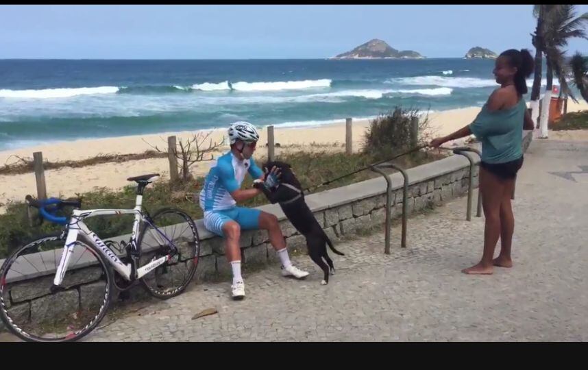“Manuelito”, uno de los máximos exponentes del ciclismo nacional se tomó un respiro en su rutina de entrenamiento y mientras disfrutaba del inigualable paisaje, un perro se acercó a saludarlo de una forma muy amigable, como cuando reconocen el cariño que eres capaz de dar.