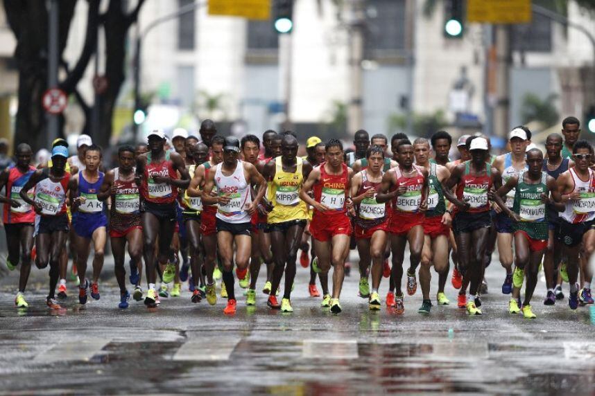 La exigencia de la prueba de 42 kilómetros fue muy grande para el grupo de más de 150 fondistas que recorrieron las calles de Rio bajo la lluvia y un ambiente húmedo.