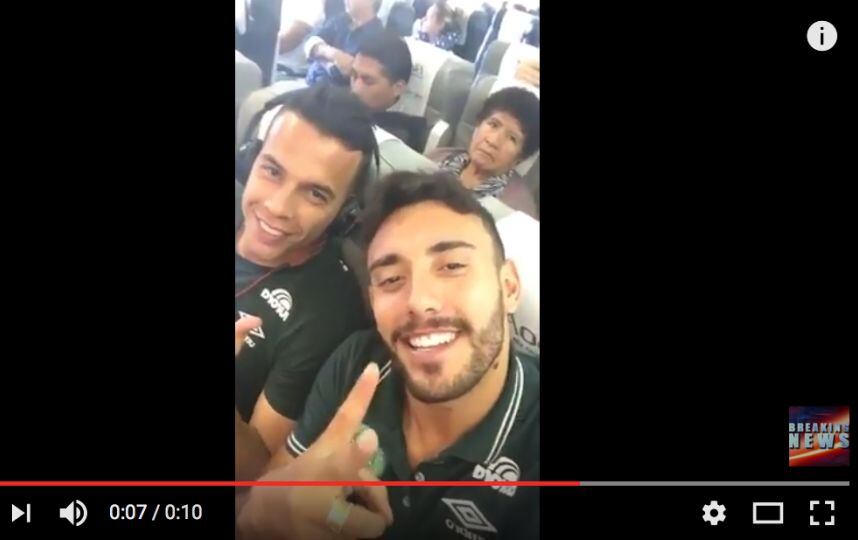 En la grabación que publicó en Snapchat, el jugador aparece sentado junto a su compañero el portero Marcos Danilo, quien también sobrevivió al impacto, aunque falleció horas después, por lo que las autoridades colombianas no lo incluyen en la última lista de sobrevivientes.