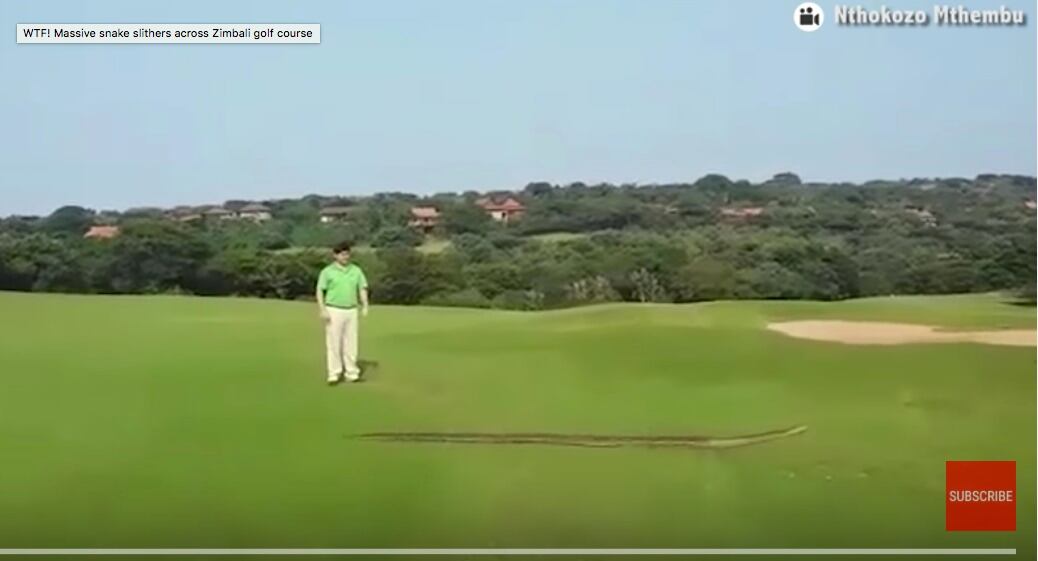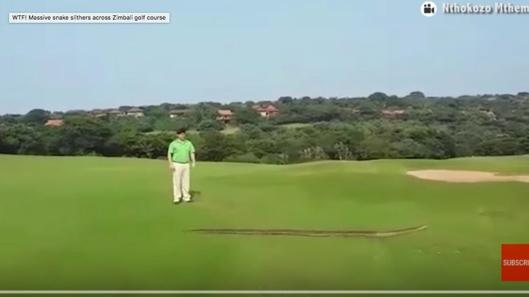 Un video de una enorme serpiente pitón atravesando un campo de golf se ha vuelto rápidamente viral, después de que uno de los deportistas se atrevió a tocarla.