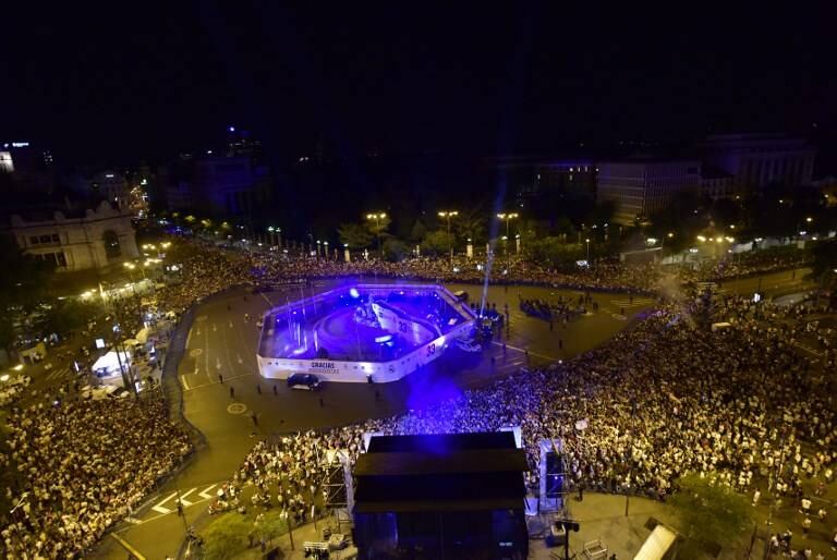 También se ha levantado una estructura para que los jugadores puedan acercarse a la diosa Cibeles, a la que los capitanes del Real Madrid suelen poner una bufanda blanca en estas celebraciones.