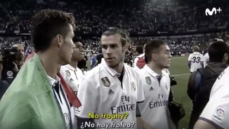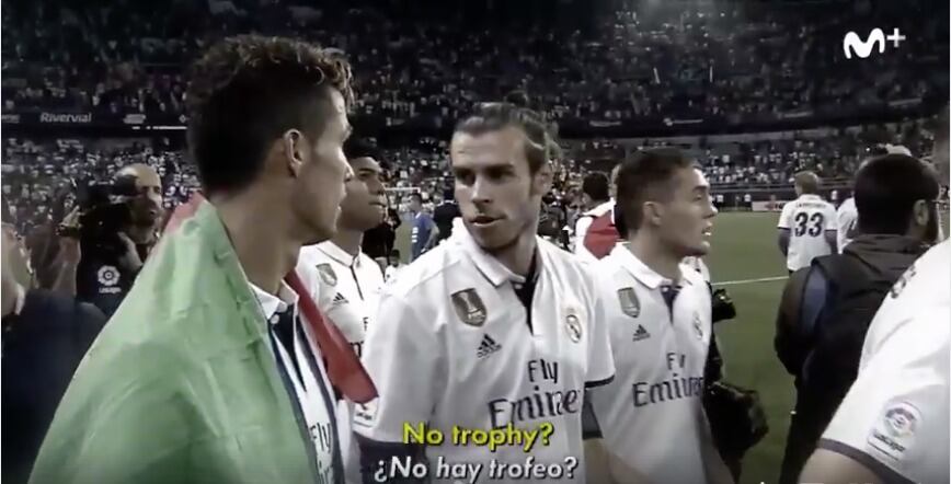 Y luego, el momento de Bale y Modric. “¿Y el trofeo?”, pregunta Modric, y Bale le segunda diciendo: “¿Cómo no?”, incrédulo cuando alguien le dice que no hay trofeo.