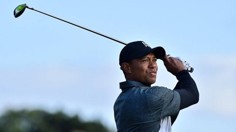 En la imagen se observa a un Tiger Woods con una expresión seria y visiblemente cansado.