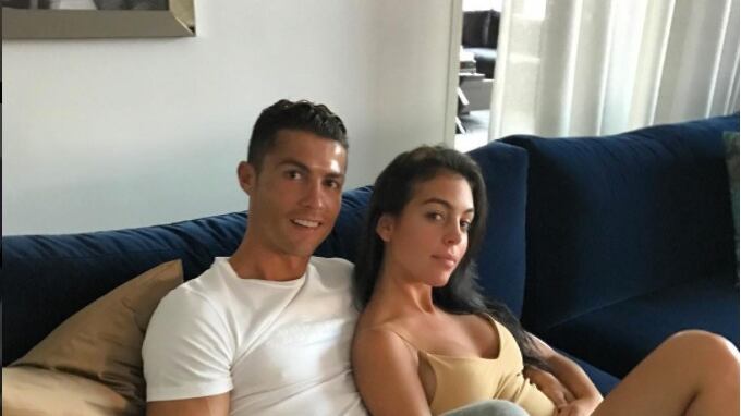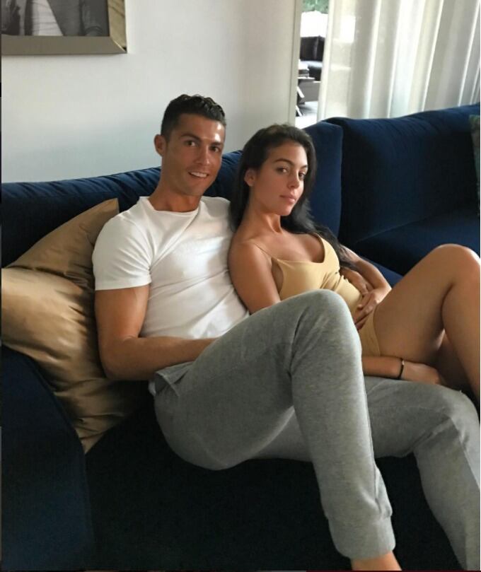 En la foto ambos aparecen recostados cómodamente en uno de los sofá de su casa, ella luce una camiseta y ambos tienen la mano izquierda sobre el vientre de Georgina.