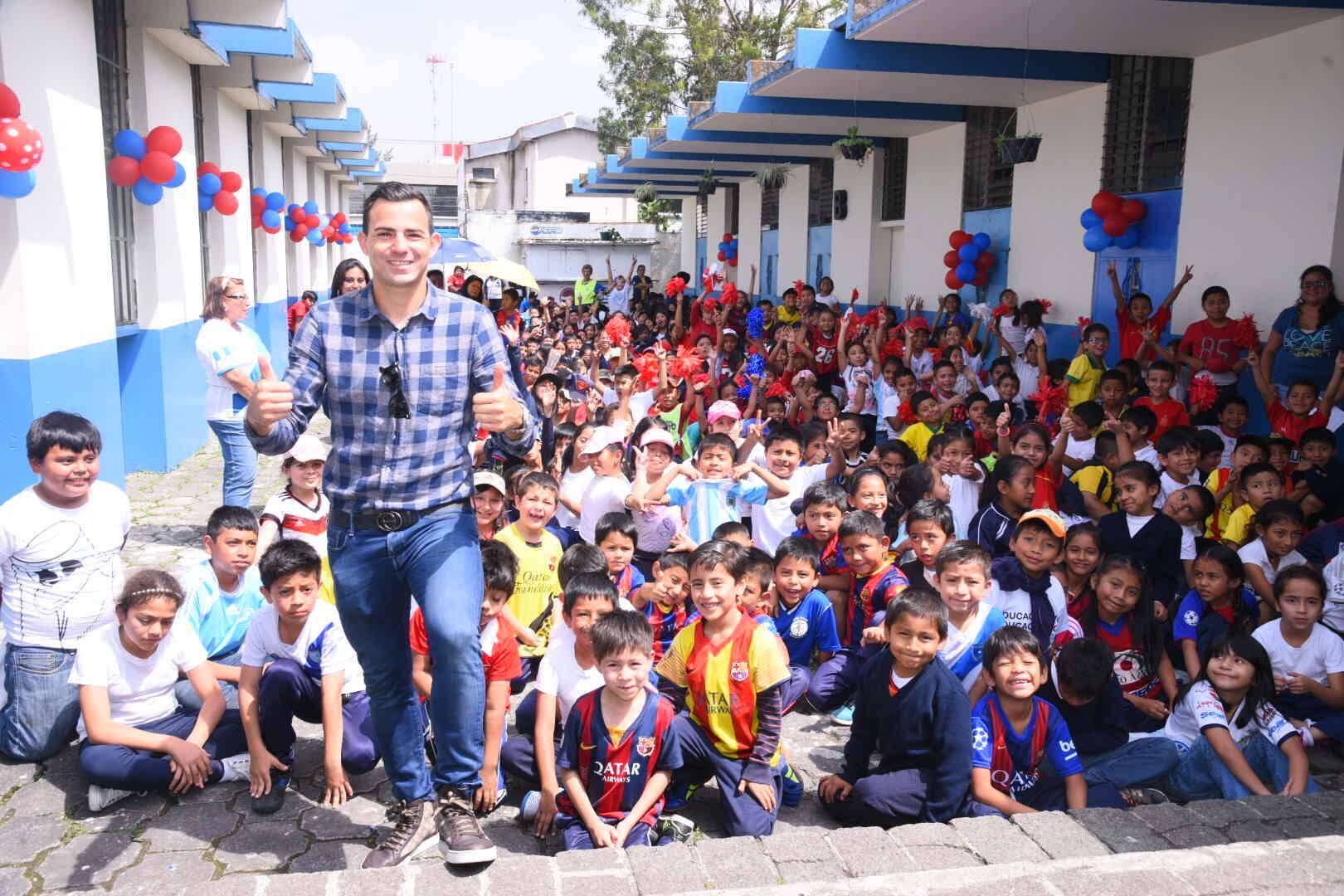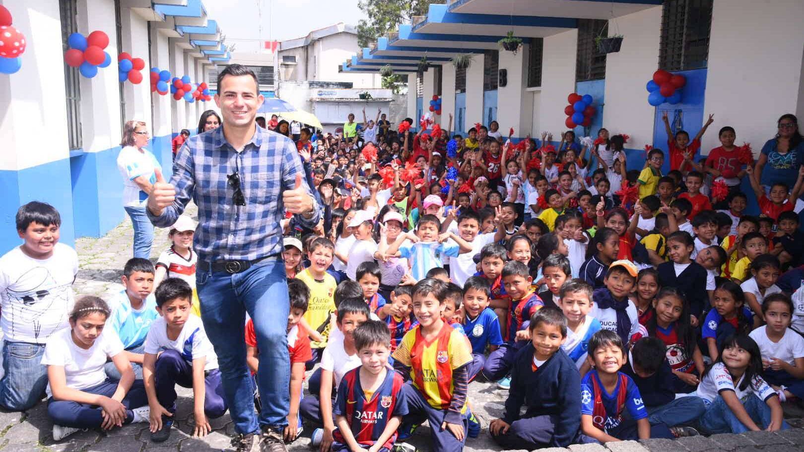 La estrella roja visitó este martes la Escuela José Francisco de Córdova en la zona 11, Colonia El Mirador, donde estudió la primaria y en donde fue ovacionado por decenas de pequeños que lo veían con asombro y escuchaban sus experiencias en el futbol.