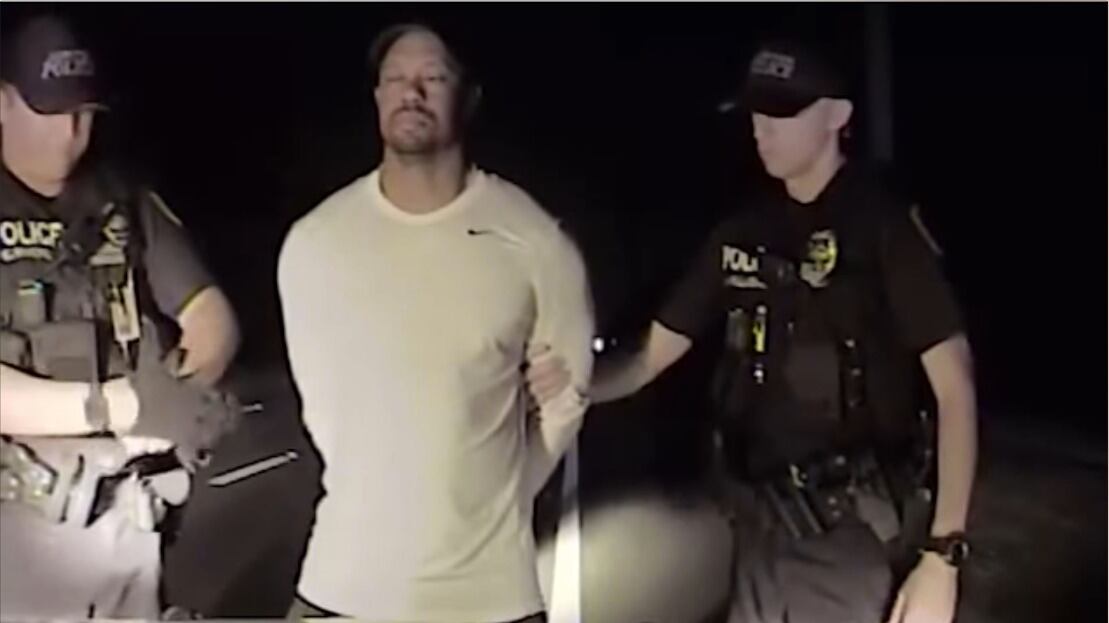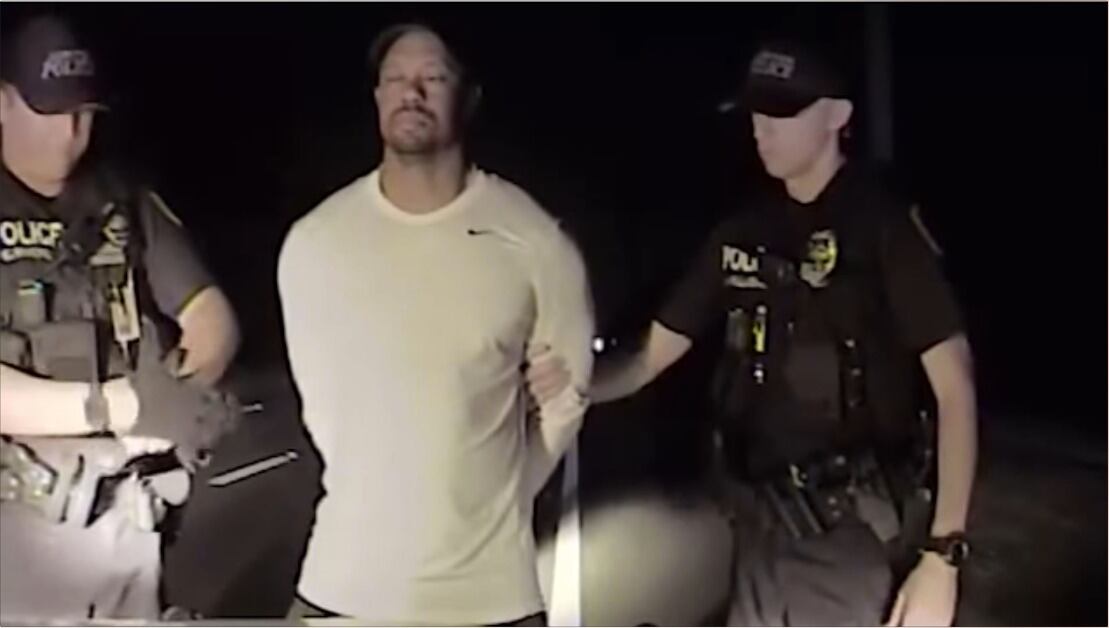 Las controversiales imágenes muestran a Tiger, esposado, descalzo y con problemas para soplar el aparato que mide el nivel de alcohol.