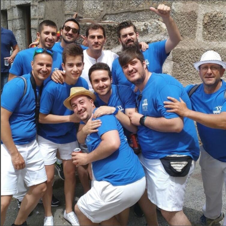 Casillas fue captado con megáfono en mano,+ mientras cantaba y bailaba, de acuerdo a la prensa española, en las fiestas de su tierra, en las que hizo de animador.