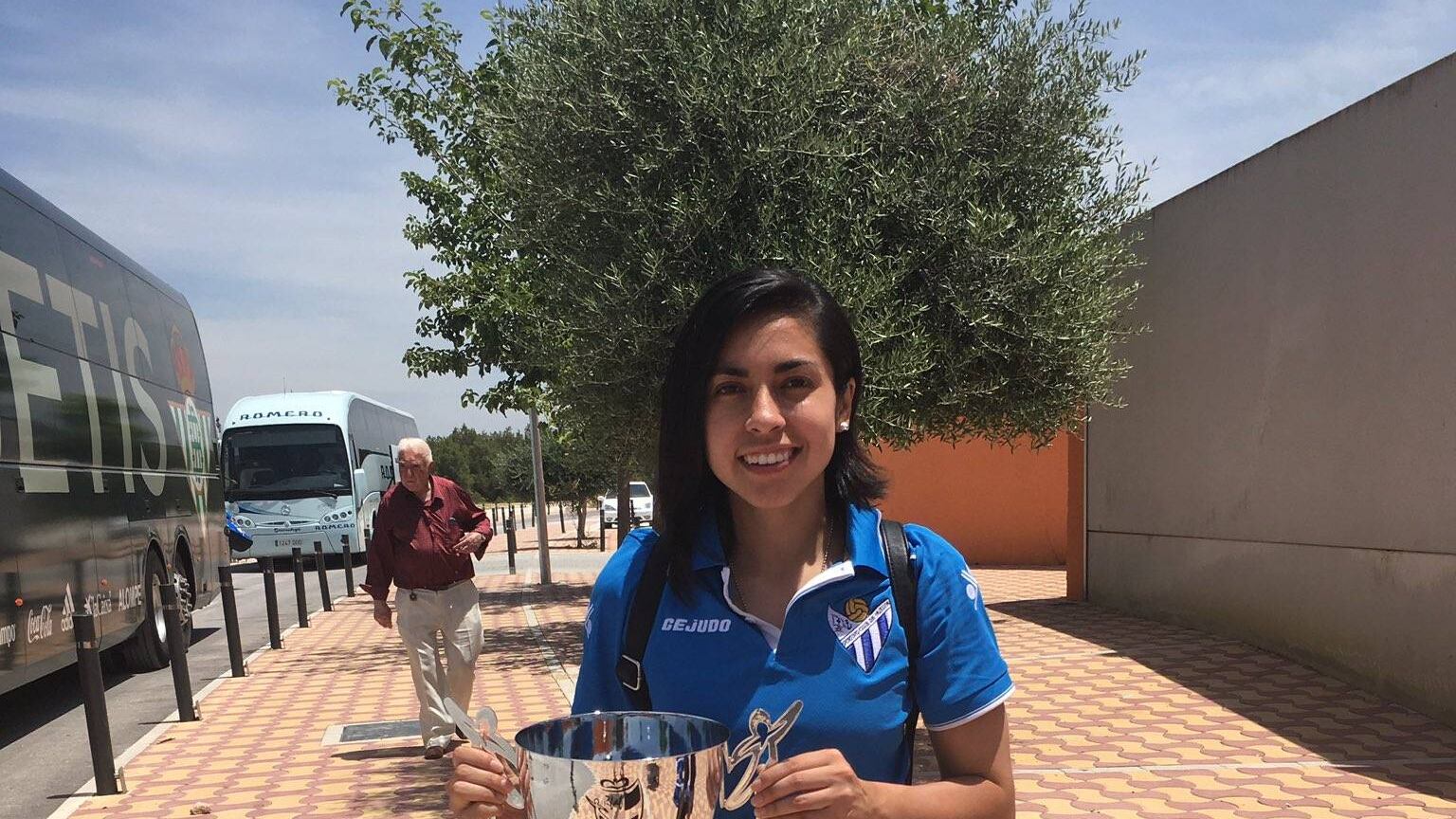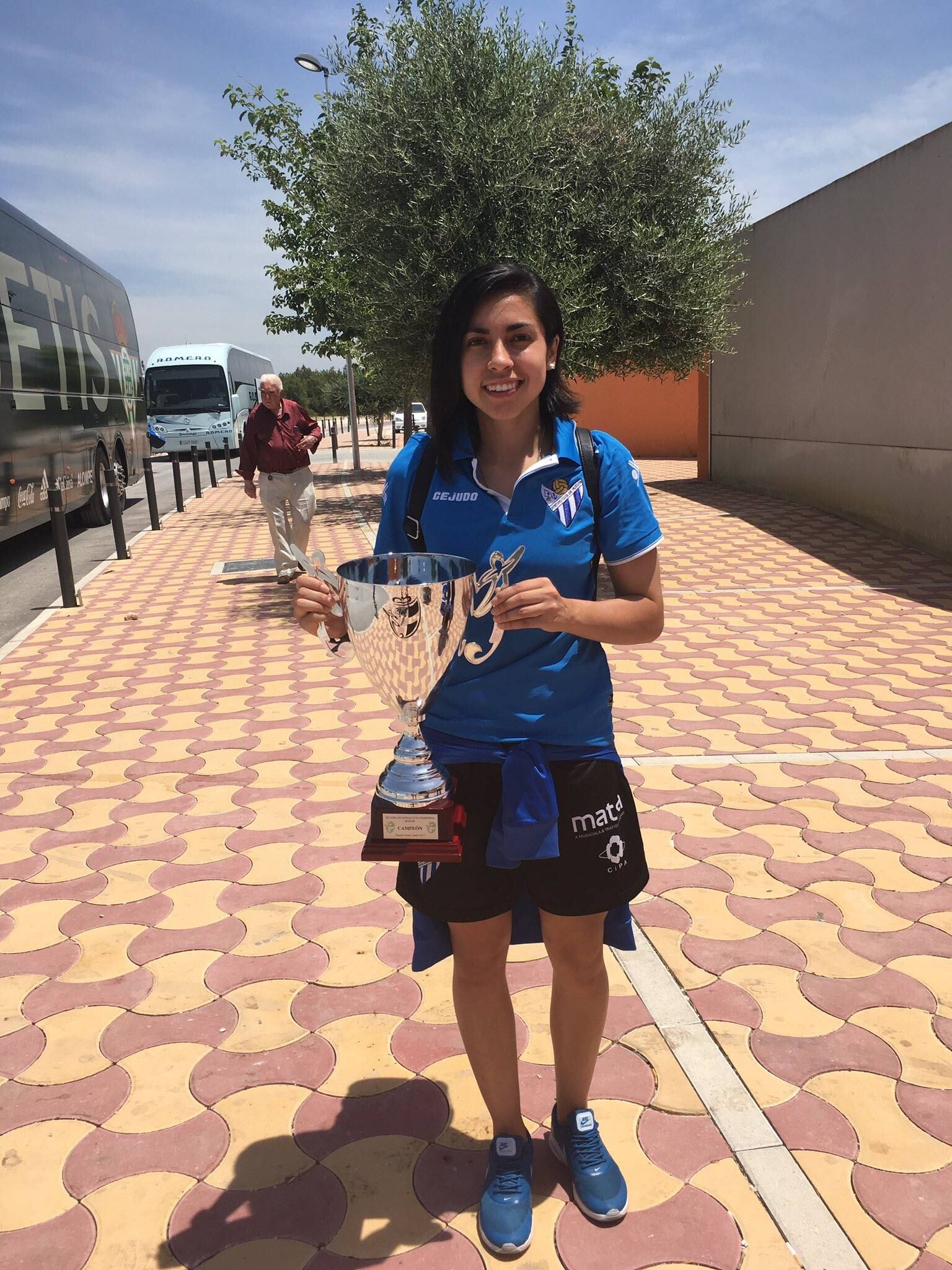 La delantera lució orgullosa el trofeo que la coronó como campeona de la Copa Andalucía, después de haber derrotado por 3-1 al Granada, en la final en la que Ana Lucía se apuntó uno de los tres goles.