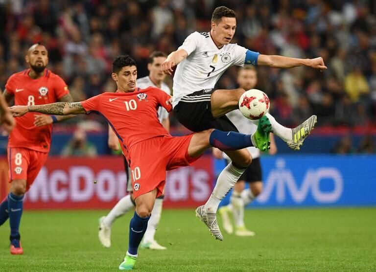 Antes de concluir el primer tiempo, al 41, Lars Stindl igualó las acciones para la ganadora del trofeo del Mundial en Brasil 2014 al llegar puntual a la cita en el área a una diagonal que desacomodó a los defensores chilenos.