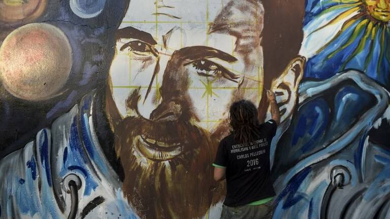 En un pequeño terreno de la cuadra, los amigos están por terminar un mural de Messi que encargaron al artista plástico Lisandro Urteaga.