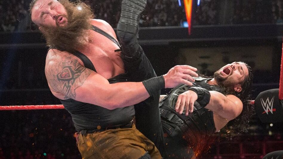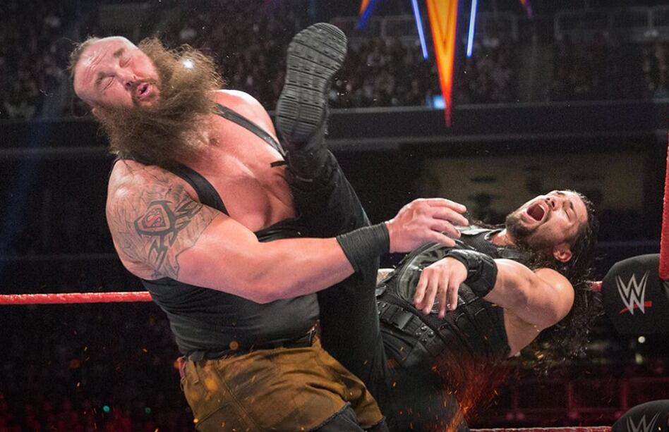 Invadido por la furia (siempre dentro del kayfabe de su personaje), Reigns puso en retroceso la ambulancia y la estrelló contra un contenedor, con la única intención de hacerle el máximo daño posible a Strowman.