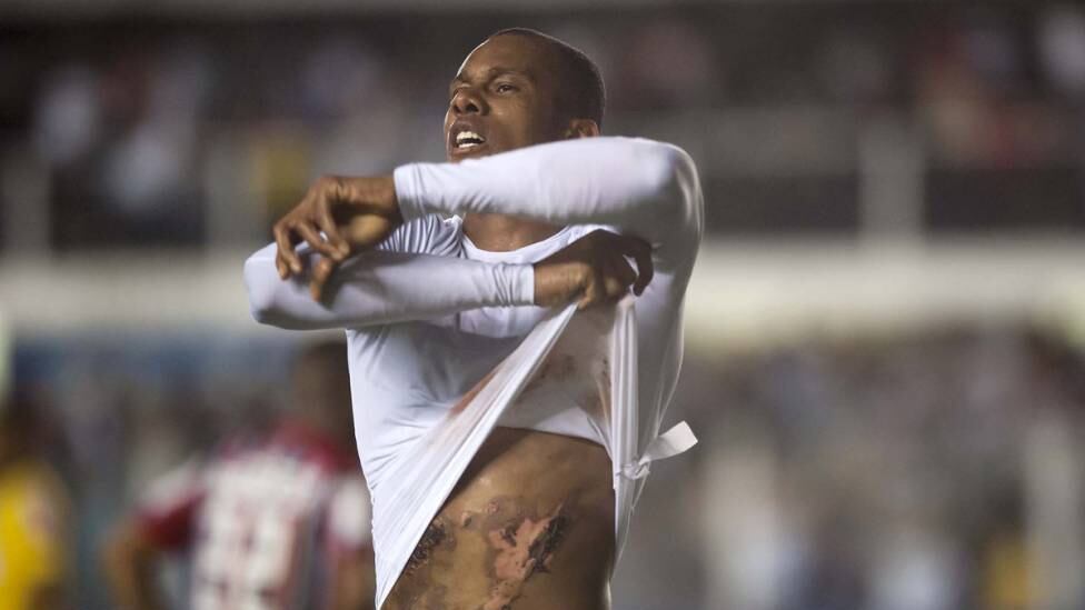 El futbolista de 29 años que llegó en 2016 al club brasileño se quitó la camiseta después de haber anotado el primer gol, y dejó al público impactado cuando mostró las quemaduras en su abdomen.